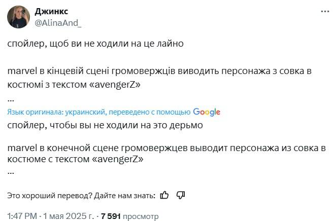 Украинцы «пригорели» от сцены после титров в супергеройском фильме «Громовержцы» от Marvel.
