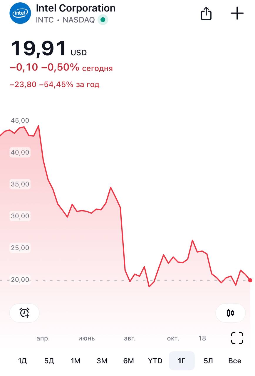 π ΠΠ°ΠΏΠΈΡΠ°Π»ΠΈΠ·Π°ΡΠΈΡ ΠΊΠΎΡΠΏΠΎΡΠ°ΡΠΈΠΈ Intel ΡΠ½ΠΈΠ·ΠΈΠ»Π°ΡΡ Π·Π° Π³ΠΎΠ΄ Π±ΠΎΠ»Π΅Π΅ ΡΠ΅ΠΌ Π²Π΄Π²ΠΎΠ΅ Π½Π° ΡΠΎΠ½Π΅ ΡΠ΅ΠΊΠΎΡΠ΄Π½ΡΡ ΡΠ±ΡΡΠΊΠΎΠ² ΠΏΠΎΡΡΠΈ Π² 20 ΠΌΠ»ΡΠ΄ Π΄ΠΎΠ»Π»Π°ΡΠΎΠ²