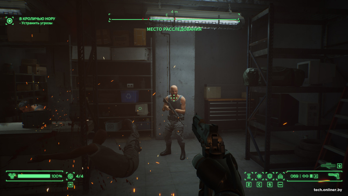 Определенное разнообразие локаций все же есть, однако, будучи линейным и коридорным шутером, Unfinished Business даже на внешне открытой местности создает узкие пути прохода, знакомая по RoboCop: Rogue City имитация пространства с «воздухом» исчезла полностью. Да, мы ведь в здании, но гигантском, тем не менее это не чувствуется.