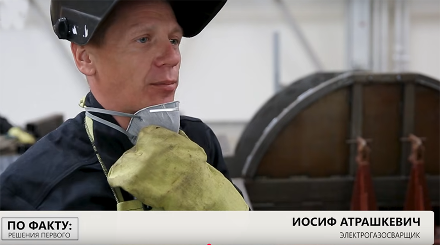 Электрогазосварщик Иосиф Атрашкевич замечает, что эффективность производства в новых условиях увеличилась: "Мы можем делать сейчас больше, чем делали на прошлом заводе. Пока идет перенастройка, переналадка, и тот завод работает, и этот. Здесь намного вентиляция современнее, намного чище, свежее, чем там. Там более задымленное производство, потому что меньше площадь. Настроение хорошее, рабочее, мотивированное. Я думаю, что выйдем на хорошие мощности и всех обеспечим транспортом".