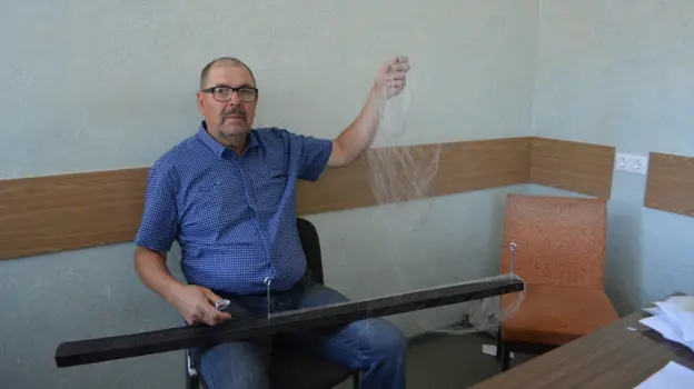 Для плетения маскировочных сетей мужчина сделал станок, плетет из рыболовной лески толщиной 0,3 мм в основном по вечерам, летом помогала внучка. За три месяца сельчанин изготовил и передал в зону СВО 30 сетей.