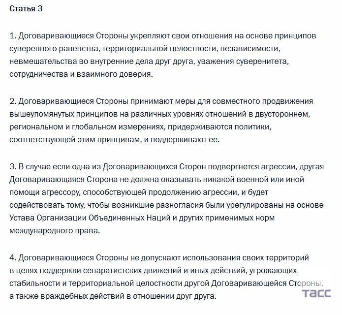 В договоре не содержится пункта о военной помощи аналогичного тому, который есть в Договоре о всеобъемлющем стратегическом партнёрстве с КНДР.