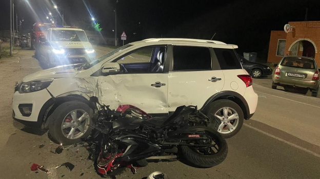 По предварительным данным, 40-летняя женщина за рулём Great Wall не уступила дорогу байкеру при повороте. Авто врезалось в мотоцикл под управлением подростка – он пострадал. Также травмы получил 15-летний парень – пассажир байкера.