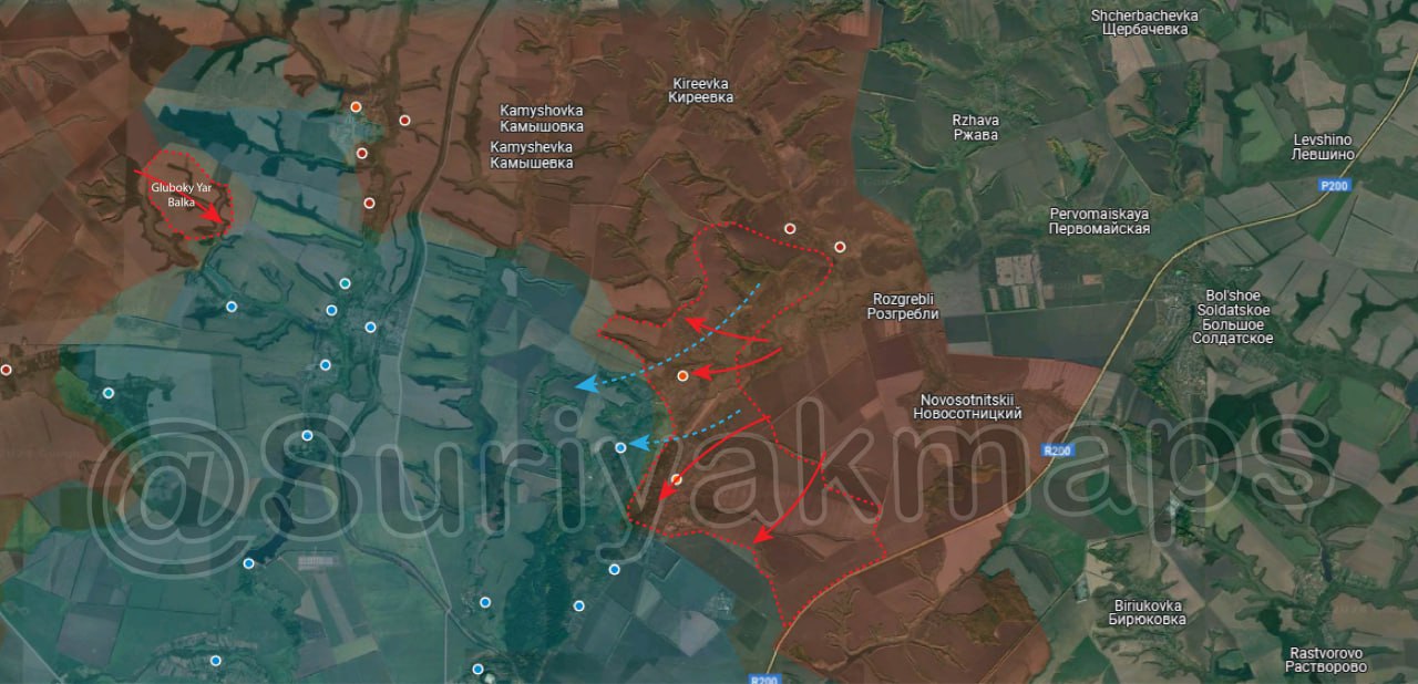 Продвижение ВС РФ в районе Кругленького, Русского Поречного и Черкасского Поречного.