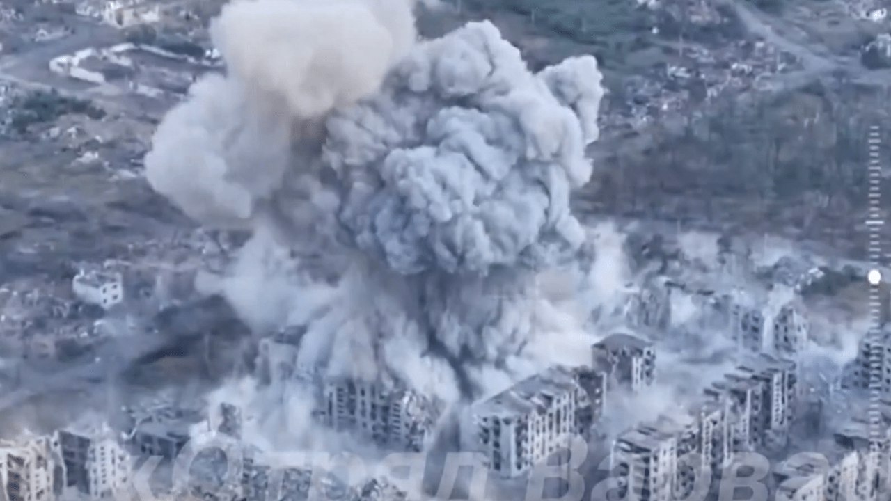 Это означает, и это очень интересно, что здесь, по-видимому, произошёл относительно быстрый отход украинских войск как раз в то время, когда наступала российская армия. Теперь на этом здании, на большом здании висит флаг, который сейчас снова снимается с помощью дрона. И у нас теперь так же есть подтверждение с украинской стороны, что Прогресс пал перед российской армией.