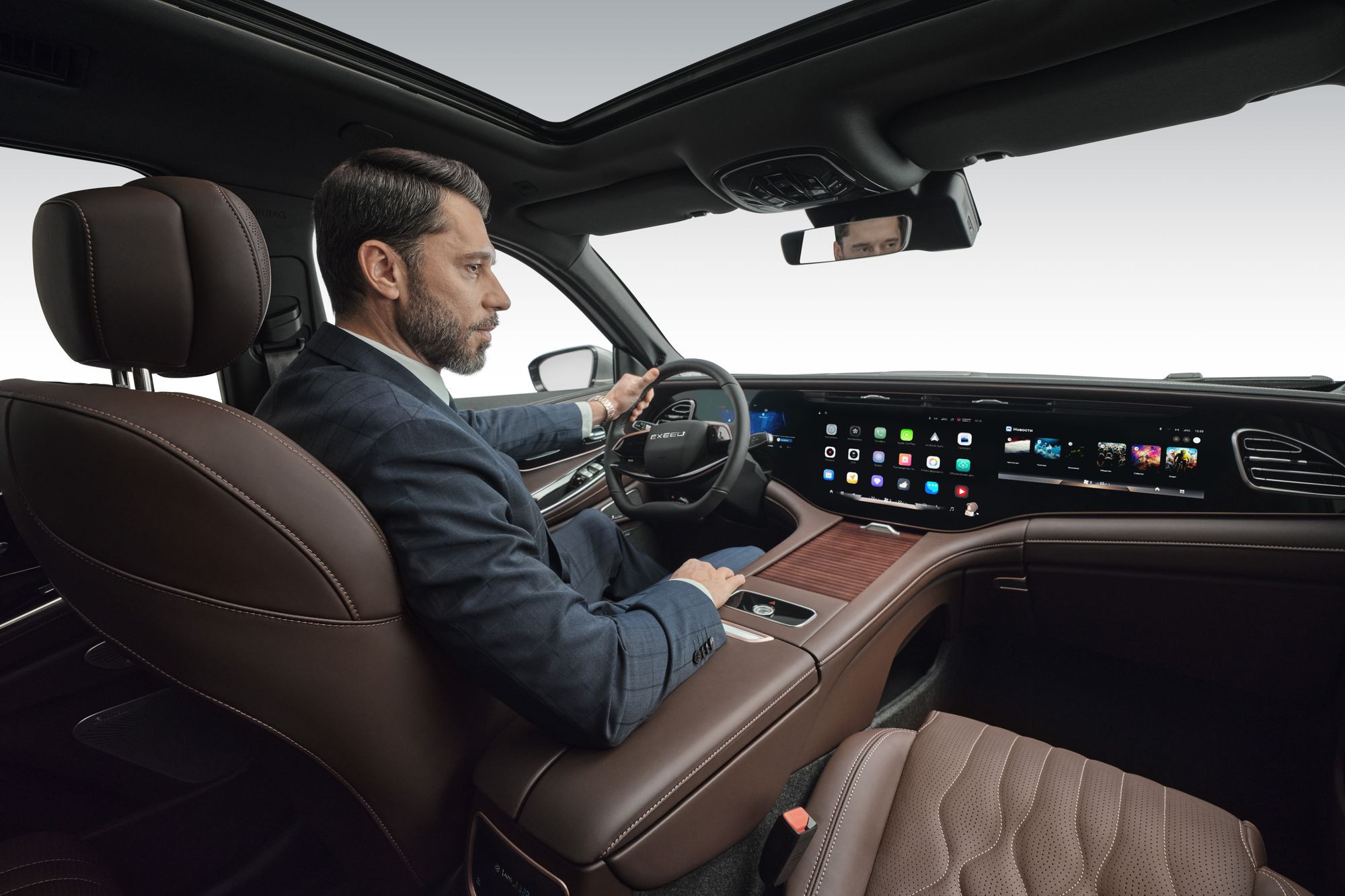 Квинтэссенция технологичности EXEED VX – сверхскоростной процессор Qualcomm 8155, вычислительная мощность которого составляет 8 трлн операций в секунду. Это означает, что даже если бы все сценарии приложений были запущены одновременно, это не привело бы к сбою из-за высокой нагрузки, система в любом случае продолжит работать плавно. Тройной центральный дисплей состоит из двух экранов по 12,3 дюйма и одного 15,6 дюйма под одним триплексным стеклом, при этом один из экранов предназначен для пассажира и открывает доступ к целому ряду развлечений.