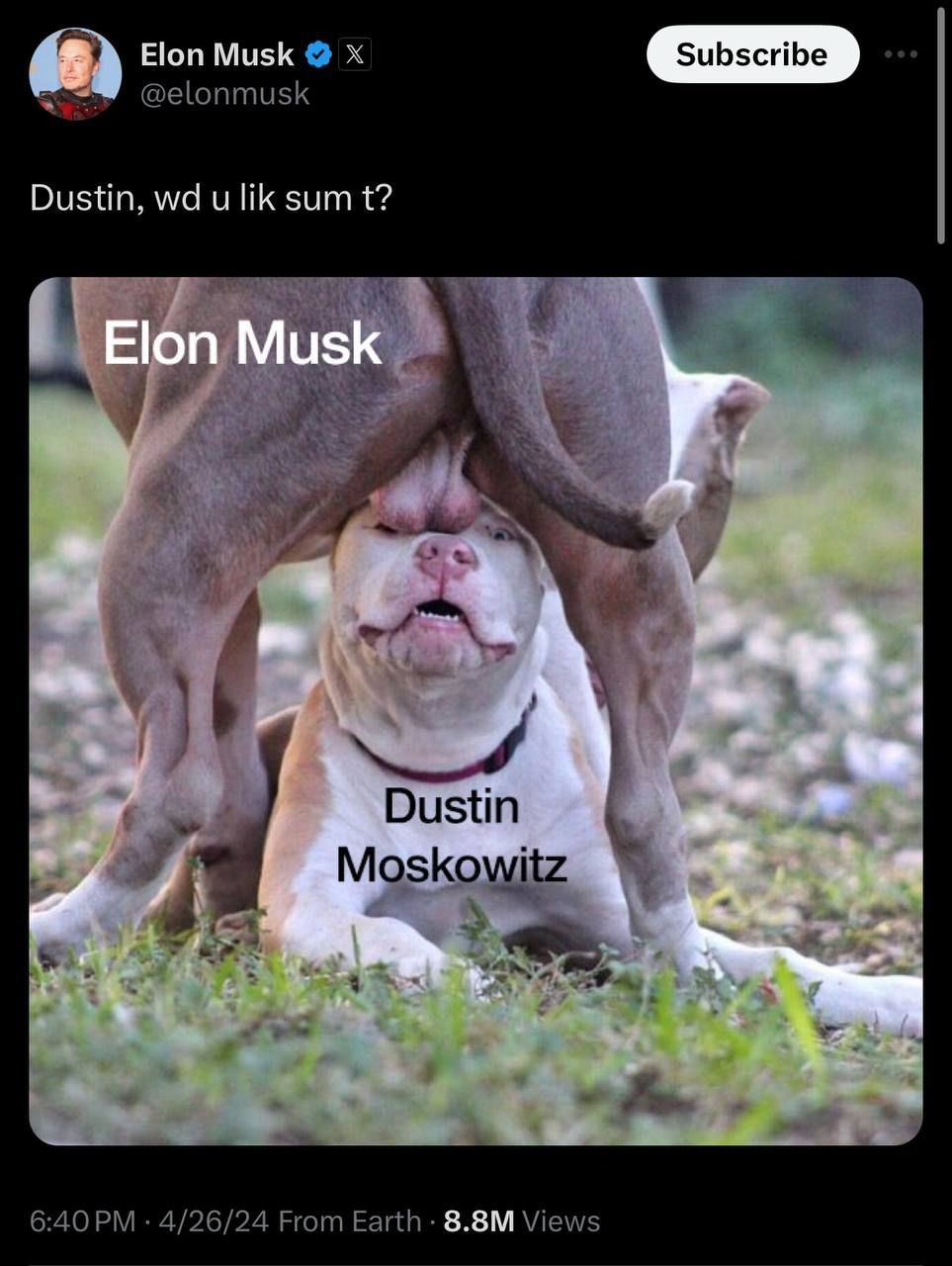 ✔️Илон Маск передал привет соучредителю Facebook Дастину Московицу