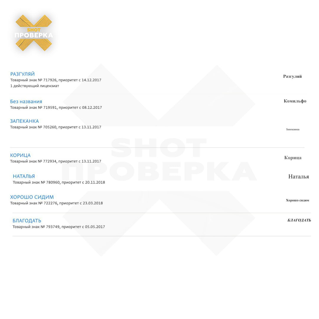 По данным SHOT ПРОВЕРКИ, судебные иски приходят от предпринимателя Азамата И. За последние четыре года он участвовал в качестве истца в 1000+ дел на общую сумму более одного миллиарда (!) рублей. Мужик уже запатентовал 642 товарных знака, ещё более пятисот на рассмотрении. Причём в разных классах МКТУ. Большинство из них — обычные слова. Среди них: «лимон», «круг», «карандаш», «вишня», «выбор», «хорошо сидим» и другие — список можно продолжать вечно.
