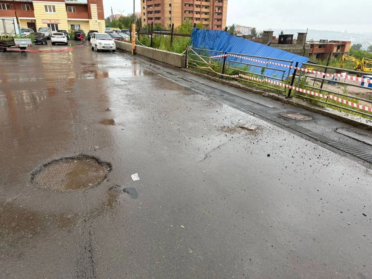 Специалисты САТП отведут ливневую воду в канализацию и сделают отсыпку. Территорию уже огородили, машины отогнали — сейчас жителей просят не парковаться у края обрыва.
