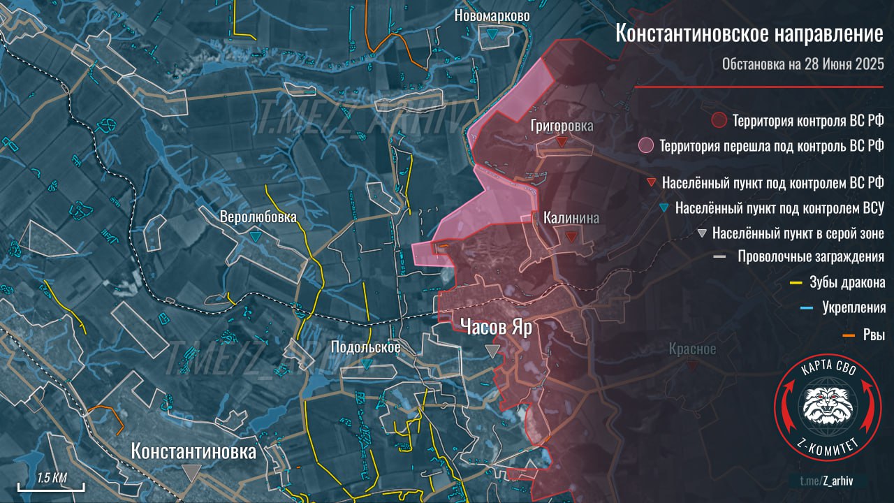 Продвижение подразделений ВС РФ возле Григоровки, Калинина и Часов Яра