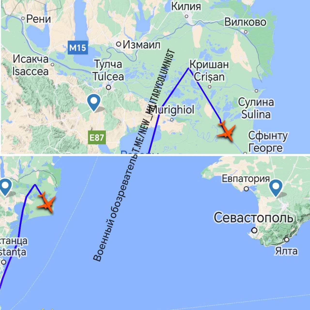 Интересен маневр самолёта, который фактически подлетел к украинской границе на Дунае, где расположены речные порты Килия, Измаил и Рени, достаточно часто подвергающиеся российским ударам.