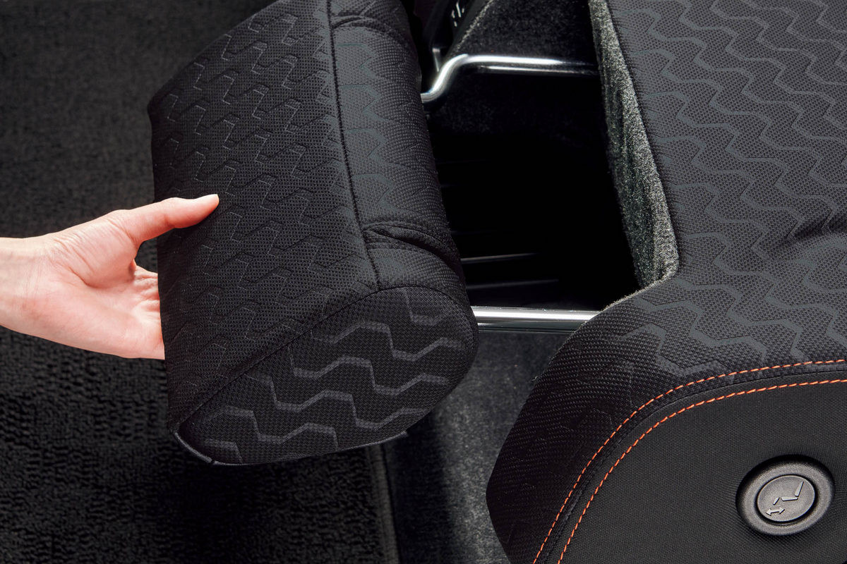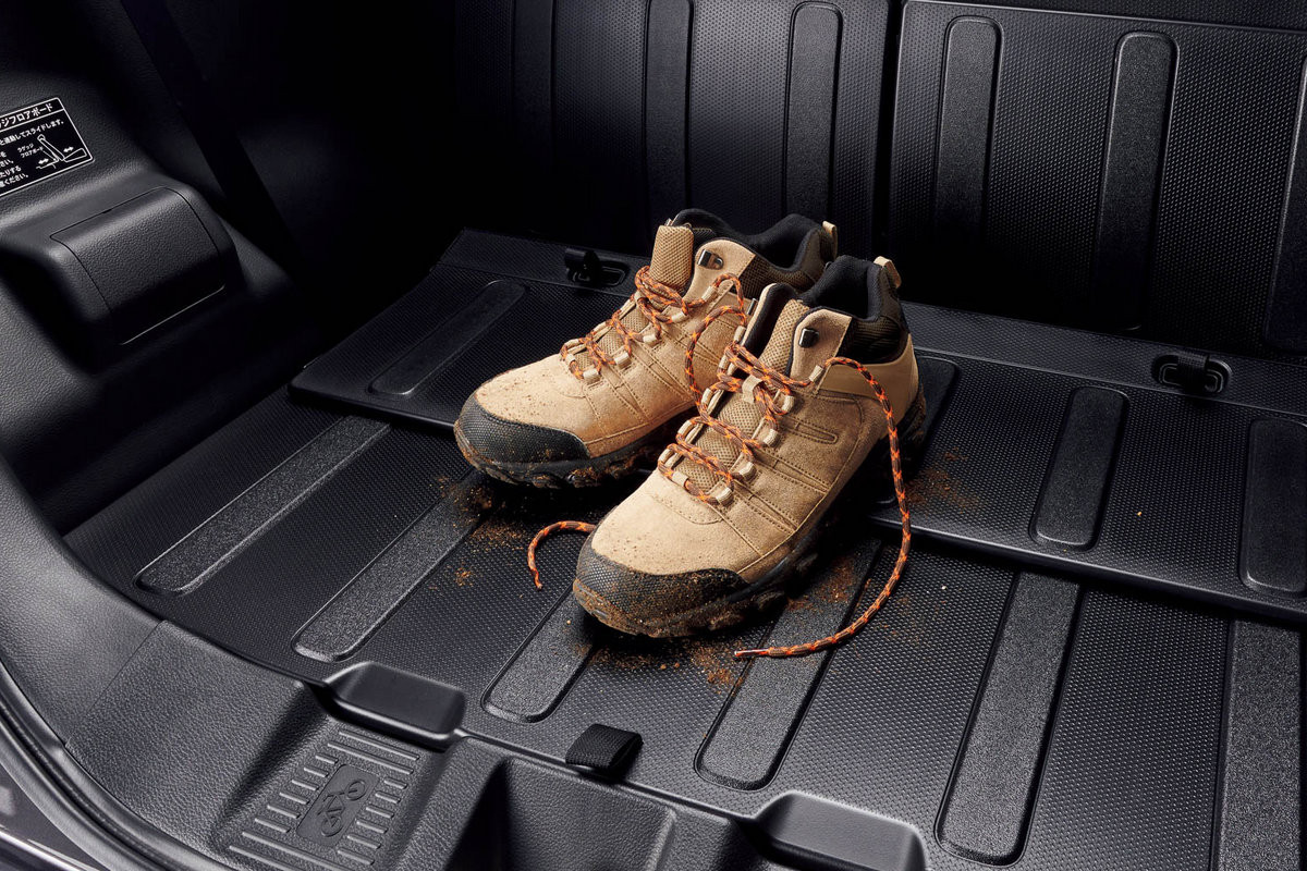 В салоне – водоотталкивающая тканевая обивка кресел, а багажник отделан материалами, которые легко мыть. Как и остальные модификации, Spacia Gear также получила многофункциональные задние сиденья с подвижной частью: ее можно использовать в качестве подставки для ног или как фиксатор. В списке оборудования еще заявлен подогрев руля. Среди опций – багажник на крышу, декоративная наклейка и спальный матрас (его можно кинуть на сложенные сиденья).