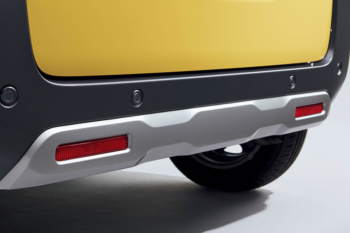 «Внедорожный» вэн имеет оригинальную радиаторную решетку с прорезями и собственные бамперы с защитными накладками, на крыше установлены рейлинги. Кроме того, у Suzuki Spacia круглые диодные фары вместо прямоугольных. Размеры пока не раскрыты. Впрочем, длина и колесная база, скорее всего, такие же, как у «просто» Spacia и Spacia Custom (3395 и 2460 мм соответственно). А вот дорожный просвет могли увеличить. Показатель остальных членов семейства – 150 мм.