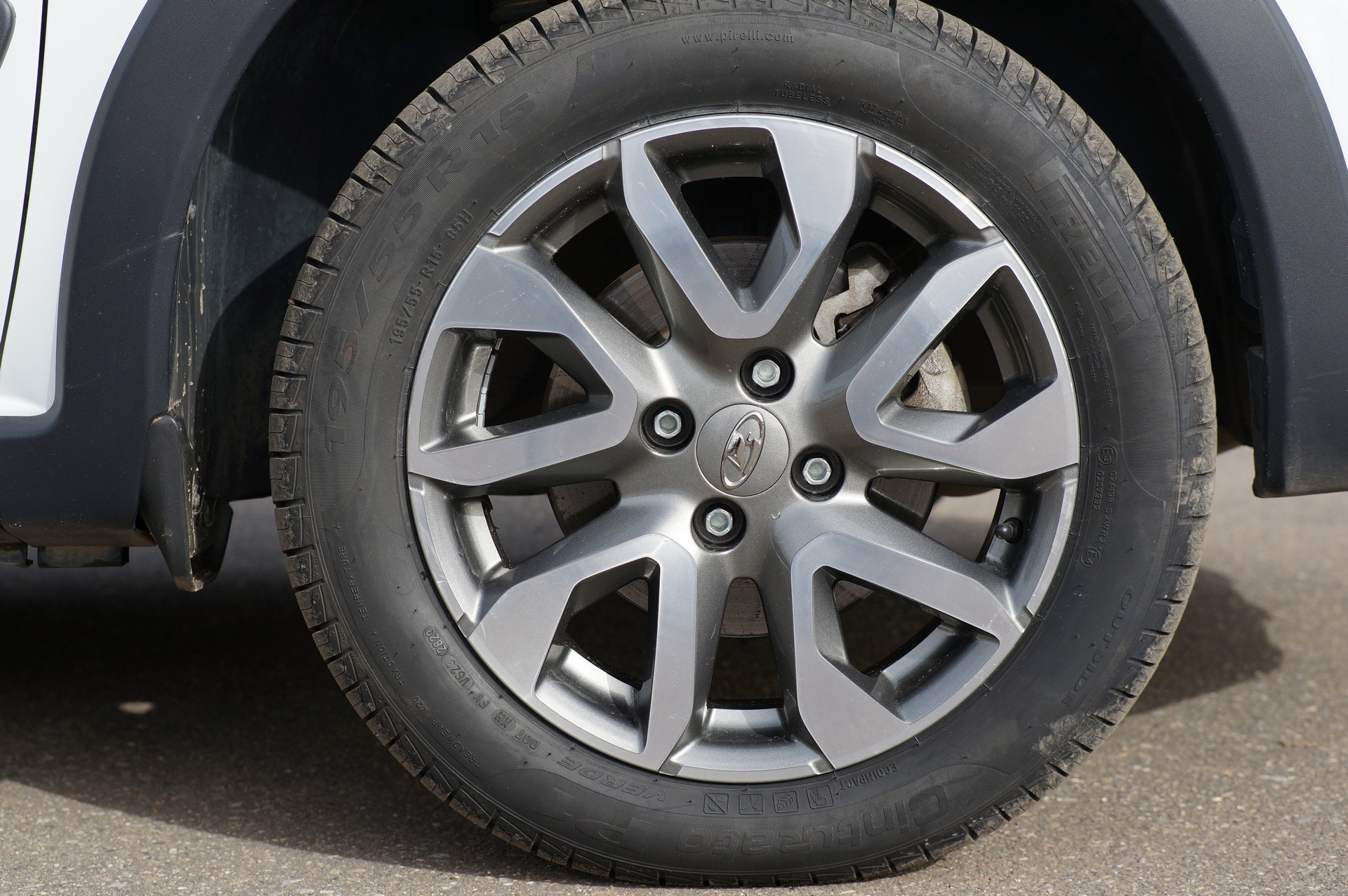 - Комплект 15-дюймовых легкосплавных дисков с летней резиной в сборе (б/у, с минимальным пробегом) вместо штатных 14-дюймовых штамповок с резиной «Кама» и колпаками.