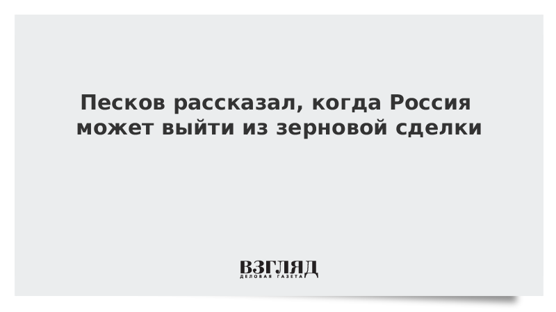 Выход России из зерновой сделки возможен после завершения ее срока, заявил пресс-секретарь президента России Дмитрий Песков.