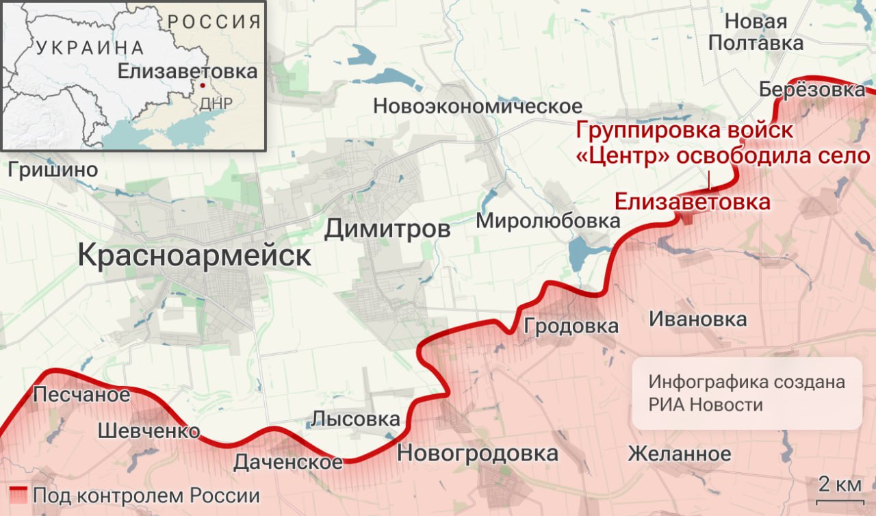▪️ Российские войска освободили населенный пункт Елизаветовка в ДНР, сообщили в Минобороны.