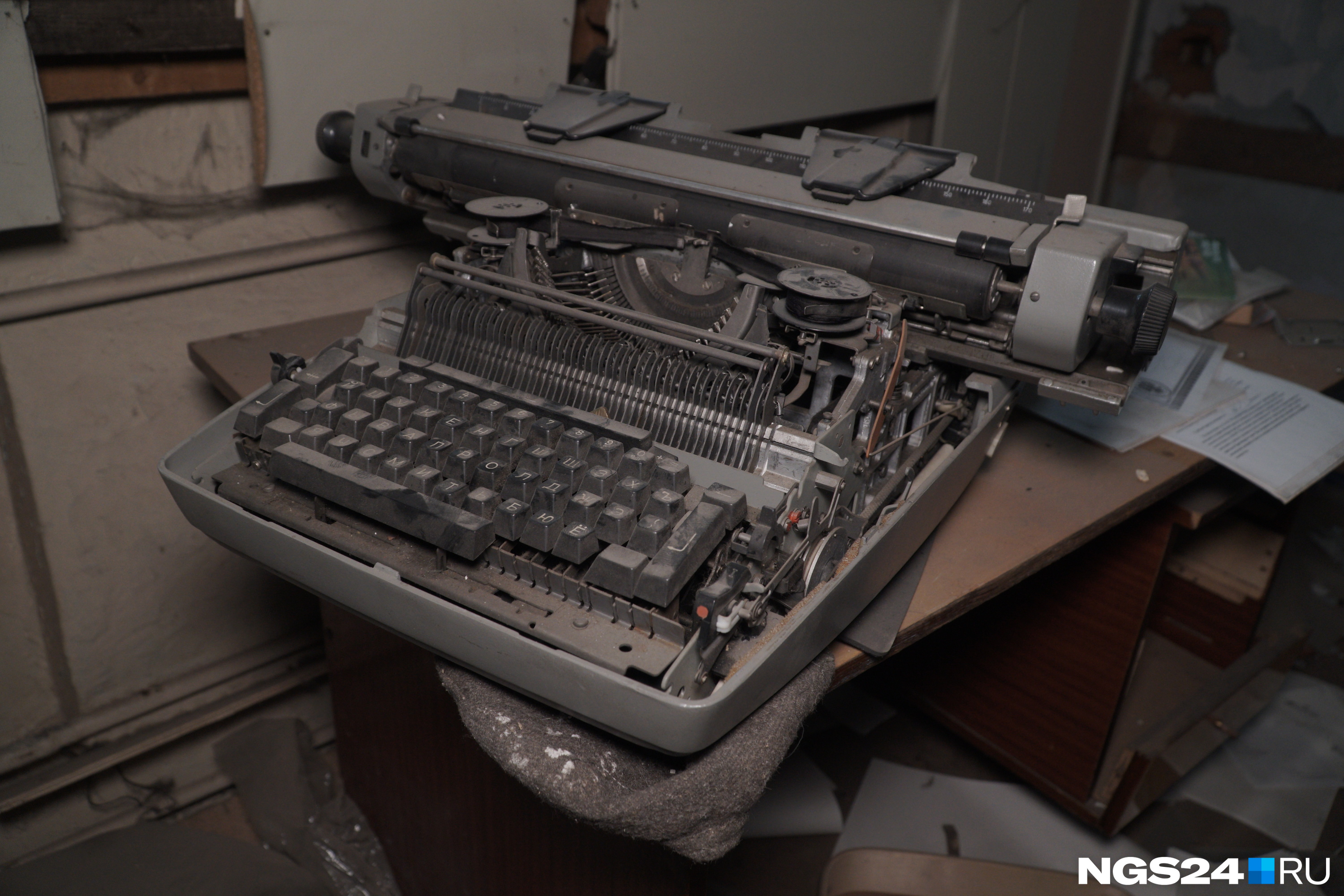 На втором этаже была столовая, даже соль сохранилась. Над окном раздачи висел ключ, применение ему мы не нашли. В одной из комнат сверкала печатная машинка и два закрытых сейфа. Счеты, целые чайные пакетики, дискеты, множество шкафов с макулатурой. Повсюду лежала сменная обувь бывших рабочих. В некоторых шкафах стоял корвалол. Утюг, пара чайников. Кабинет директора с документами обосновался на втором этаже заброшки. В здании мы провели примерно полтора часа и отправились назад, потому что начало темнеть.