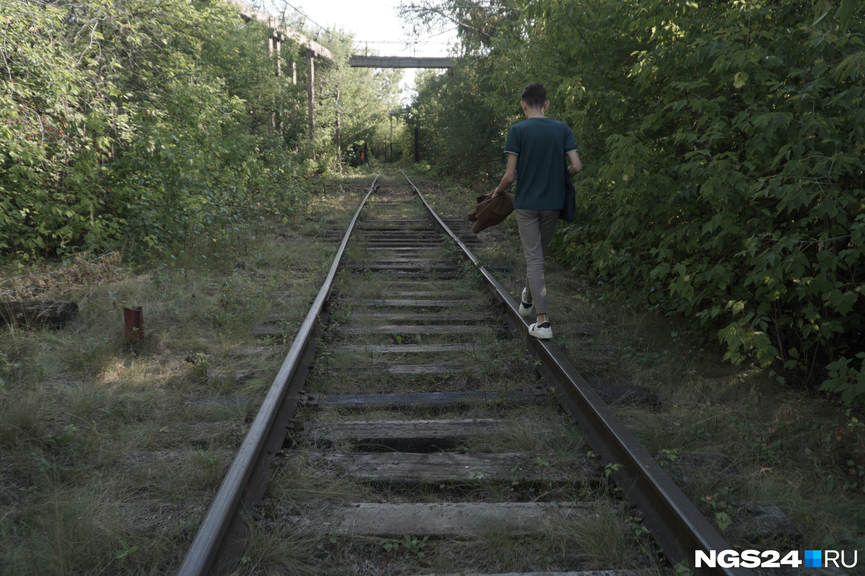 Наша команда перешла дорогу к промзоне и по шпалам пошагала искать заброшенные здания. Первое, что увидели, — забор с замком на воротах и здоровую дырку рядом, в нее мы спокойно пролезли. Пройдя 150 метров, наткнулись на старенький поезд, но доступ к нему был закрыт, прямо над ним висела камера, значит, он не заброшен, поэтому мы пошли правее.