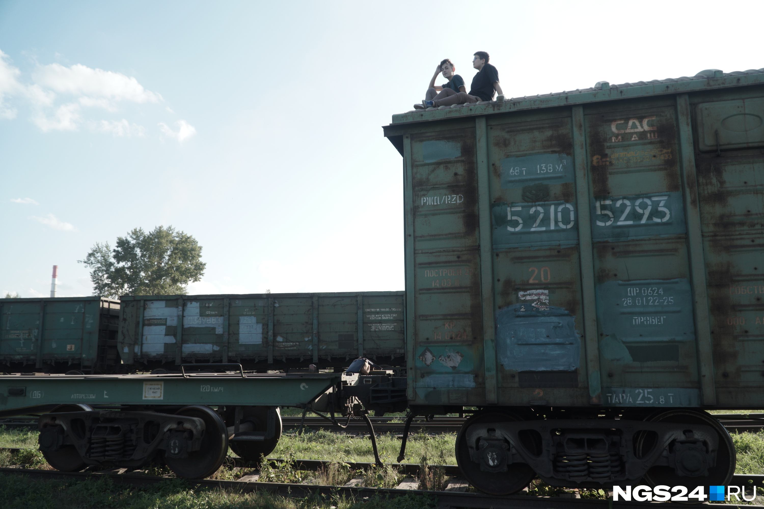 Нам удалось немного посмотреть на брошенные вагоны, их там около 10 штук. Чтобы осмотреться, мы залезли на крышу одного из ржавых вагонов, он был ржавым. Оттуда увидели, что все вагоны пусты.