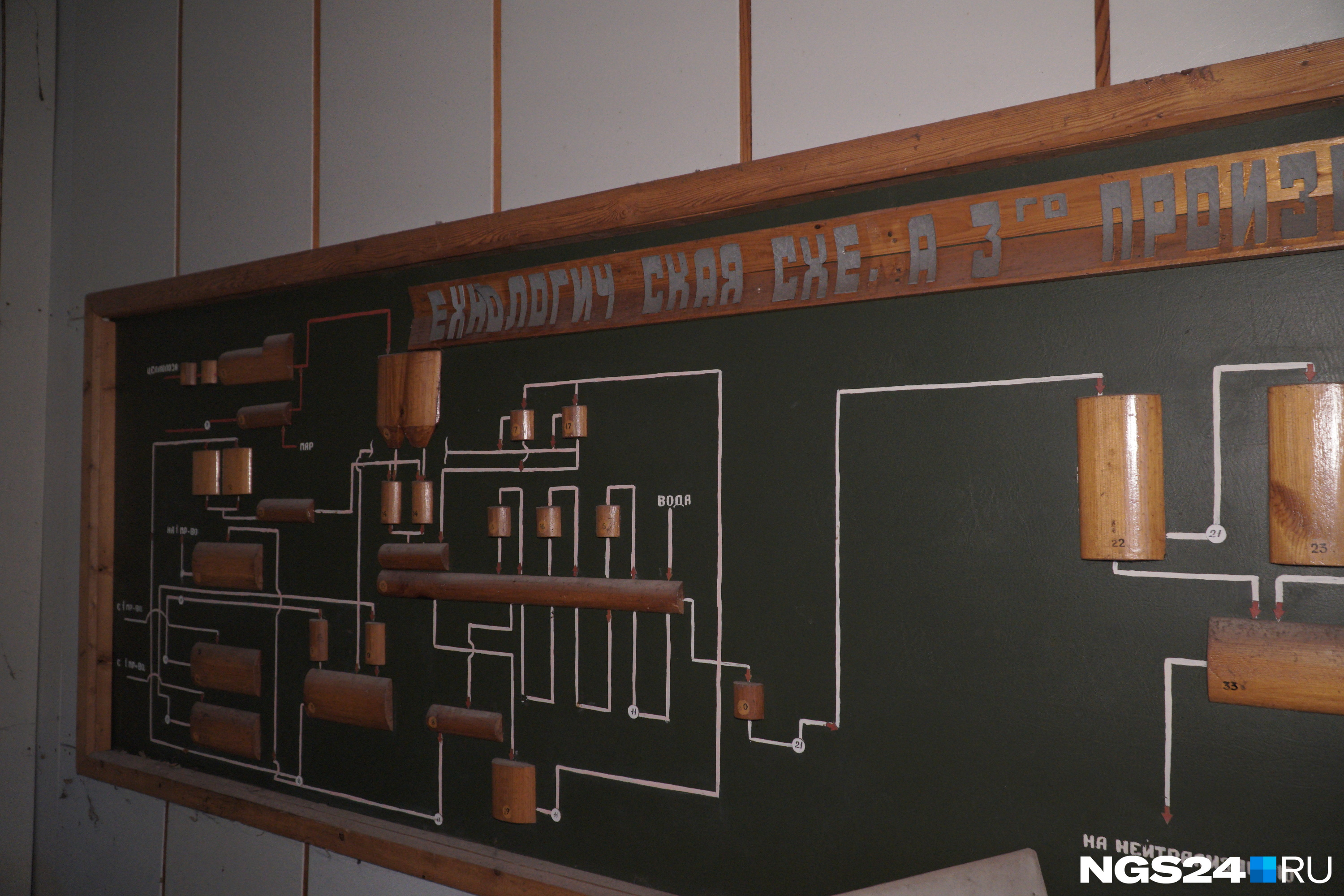 На окраине промзоны мы увидели неприметное двухэтажное кирпичное здание с номером 11, по соседству красовалась надпись «Движение транспортных средств на территории 3 пр-ва», написанная краской, видимо, десятка полтора лет назад. Зайдя внутрь здания, мы удивились — артефакты настолько хорошо сохранились, что в здании можно открывать музей. На первом этаже расположилось несколько рабочих помещений, кабинетов, туалет и лаборатория. Почти в каждой комнате висел календарь 2006 года, стоял дисковый телефон и лежал противогаз, а то и несколько. В самом начале висела деревянная доска с выгравированной схемой движения.