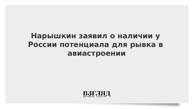 Нарышкин заявил о наличии у России потенциала для рывка в авиастроении
