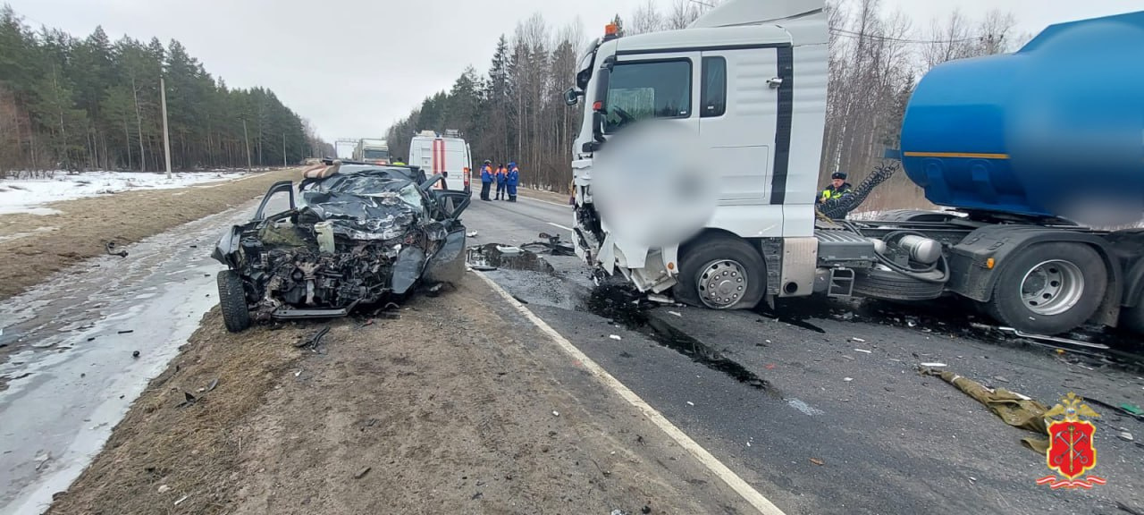 В 9:50 на этом участке столкнулись легковой автомобиль Renault Logan и бензовоз SITRAK. В ГУ МВД уточняли, что цистерна грузовика была пуста. Водитель «Рено» не справился с управлением и выехал на встречную полосу. Судя по фото, столкновение было лобовым, и легковой машине от удара буквально разворотило переднюю часть. Водитель «Логана» погиб на месте. Его дело из машины деблокировали спасатели, сообщает Аварийно-спасательная служба Ленобласти.