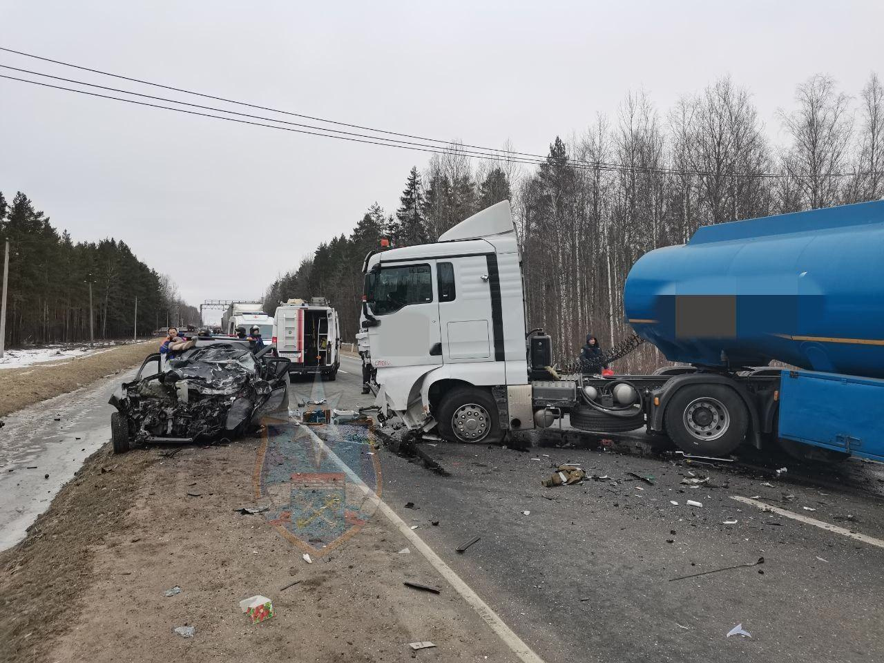 Трассу А-120 открыли после смертельного ДТП. Лобовое с бензовозом превратило Logan в груду металла