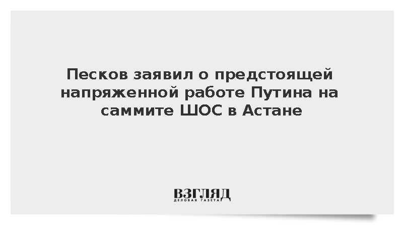 У президента России Владимира Путина на предстоящем саммите Шанхайской организации сотрудничества (ШОС) в Казахстане ожидается «напряженная повестка дня», сказал пресс-секретарь главы Российского государства Дмитрий Песков.