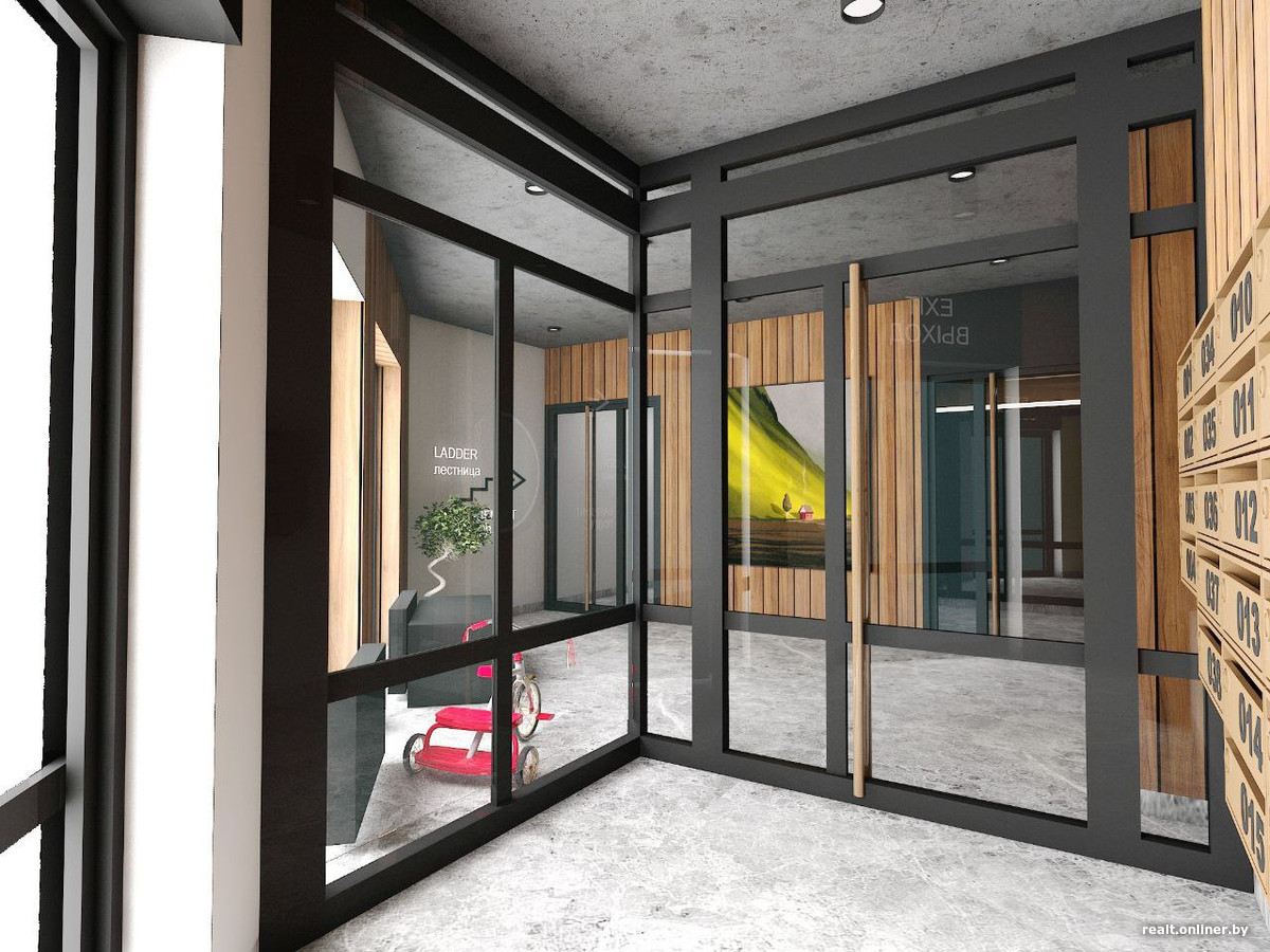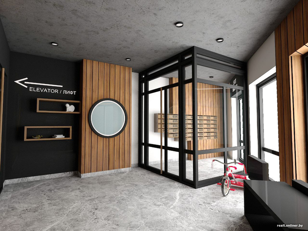 Заходим в один из подъездов и оказываемся в компактном вестибюле с почтовыми ящиками и лифтом. Разница с рендерами очевидна. Можете сравнить сами.