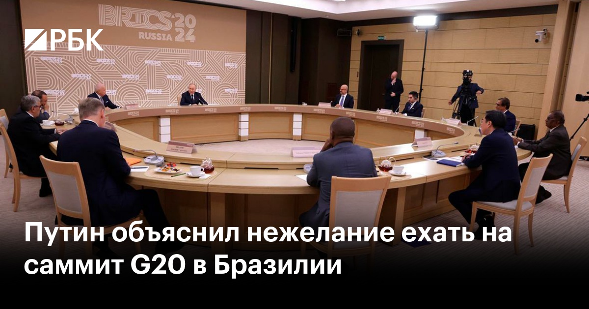Президент России Владимир Путин понимает, что его приезд на саммит G20 («Большая двадцатка»), который состоится в ноябре в Бразилии, может помешать работе этого форума и создать проблемы президенту страны Луису Инасиу Лула Да Силве. Об этом заявил сам глава государства на встрече с представителями СМИ стран БРИКС.