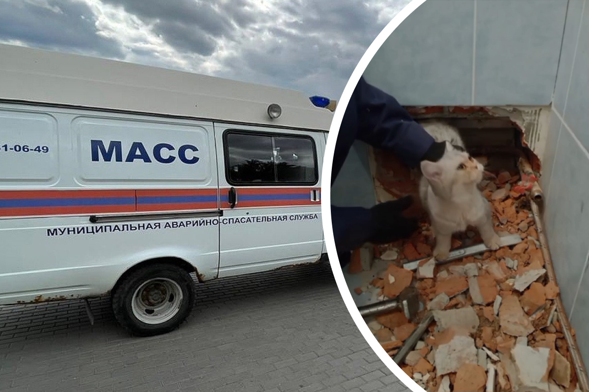 Новосибирские спасатели разобрали стену, чтобы спасти кошку