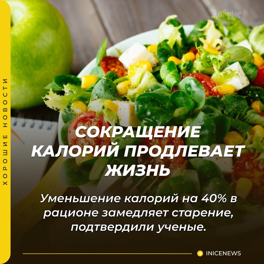 ⚡️ Сокращение калорий ПРОДЛЕВАЕТ жизнь — уменьшение калорий на 40% в рационе замедляет старение, подтвердили ученые.
