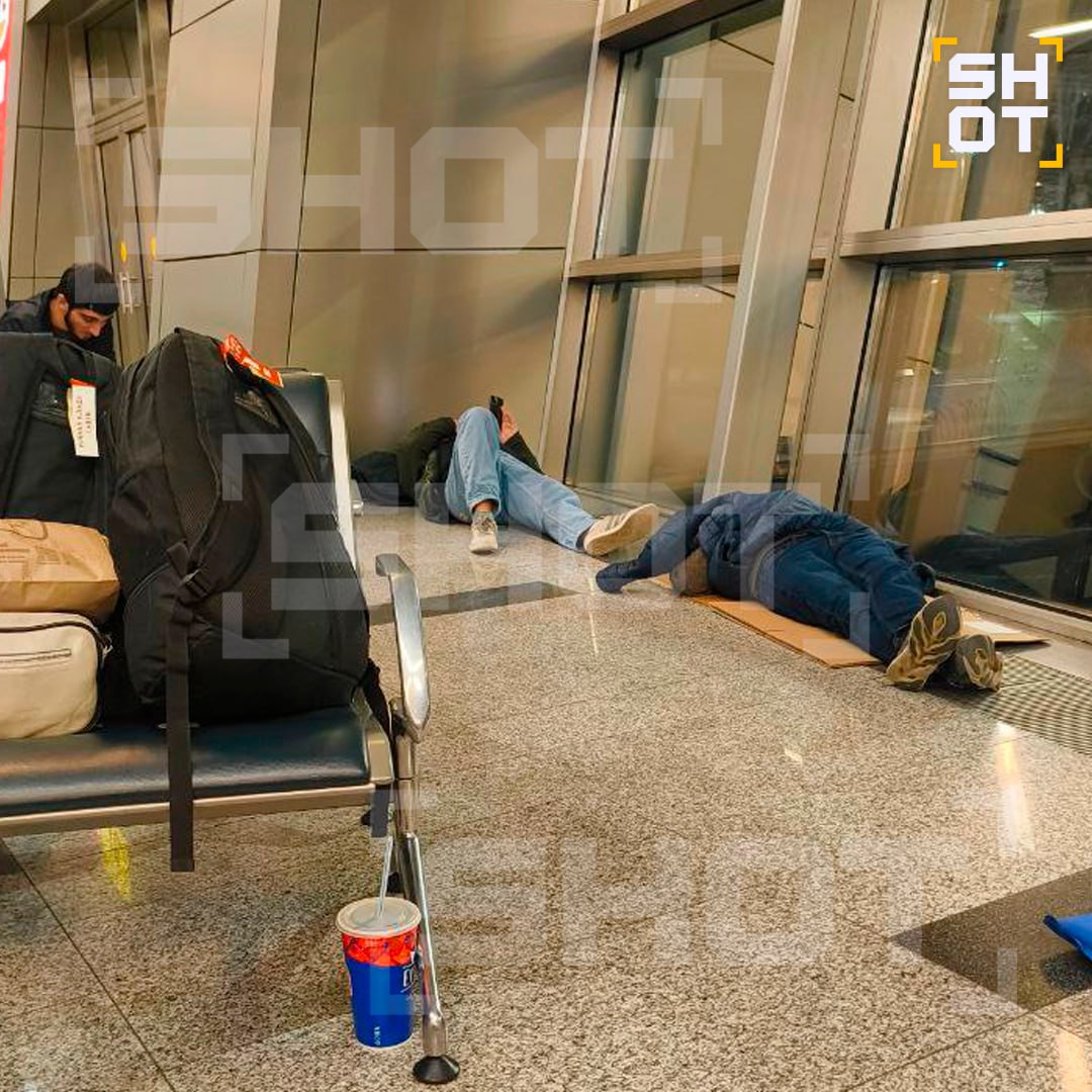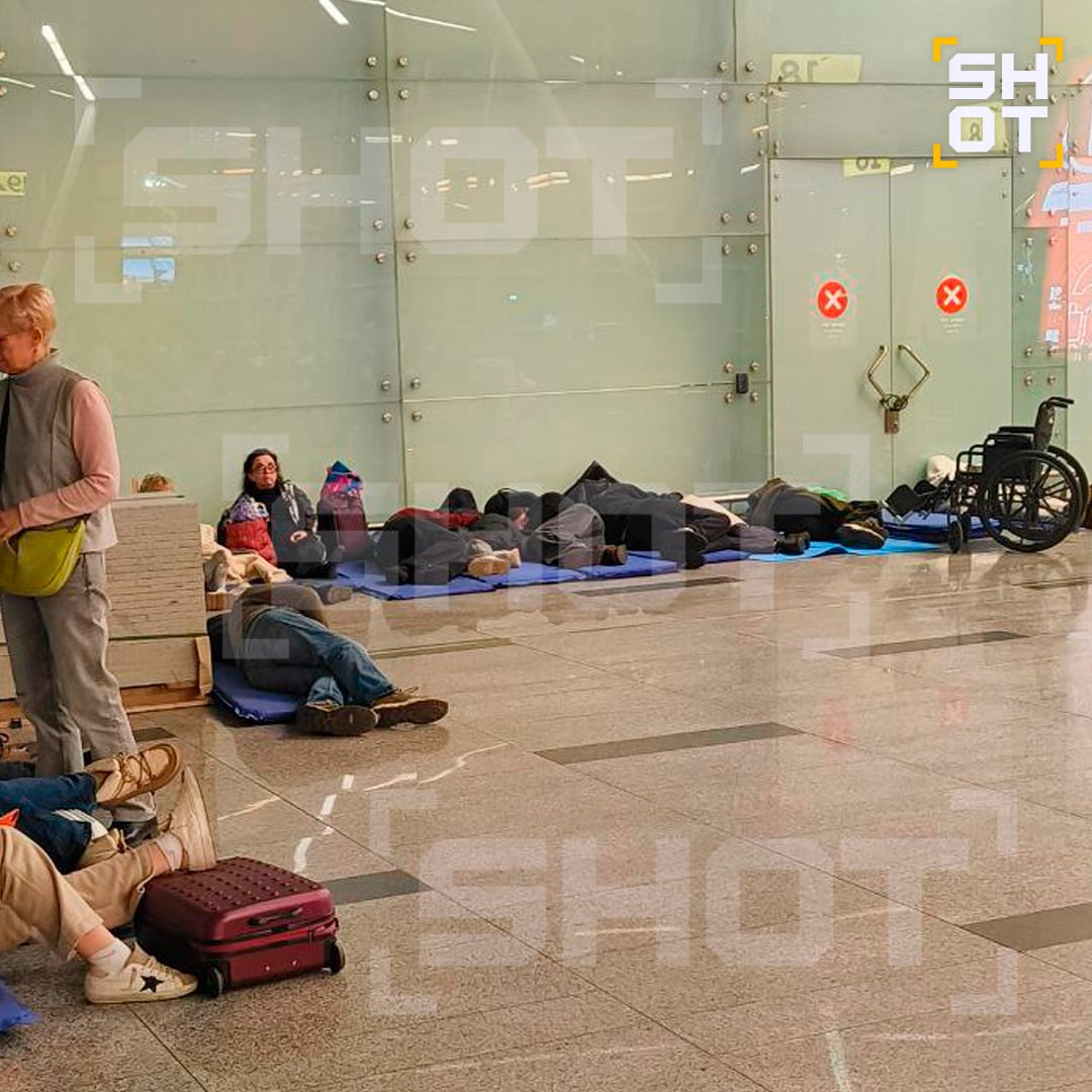 Пассажиры вынуждены спать на туристических ковриках, картонках и скамейках в аэропорту Внуково из-за закрытого неба и ВСУшных беспилотников. Небо над столицей закрыто пять часов. Более 130 рейсов в общей сложности отменены, задержаны или перенаправлены в другие аэропорты.