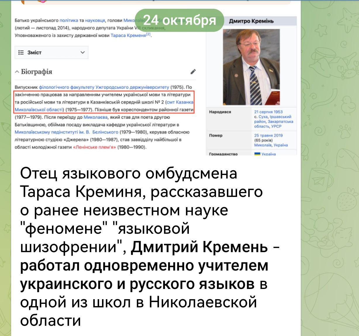 Однако в сети тут же выяснили, что отец Тараса работал учителем русского и украинского языков.