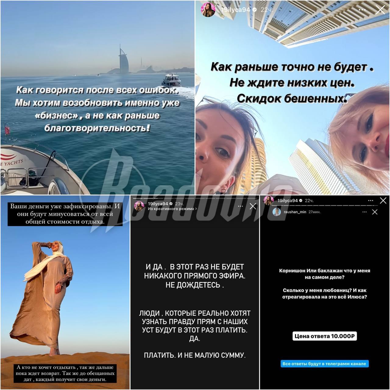 Выбраться из долговой ямы блогерша решила прежним способом и триумфально возобновила продажу путевок в Дубай. Вчера девушка поделилась прайс-листом на своей странице в Instagram*, но уже с обновленными ценами — крайне завышенными, поскольку теперь она «продает, а не организует благотворительность». Обманутым прежде путешественникам она предложила купить новый тур и доплатить разницу, а если они не хотят вестись снова — ожидать обещанные деньги.