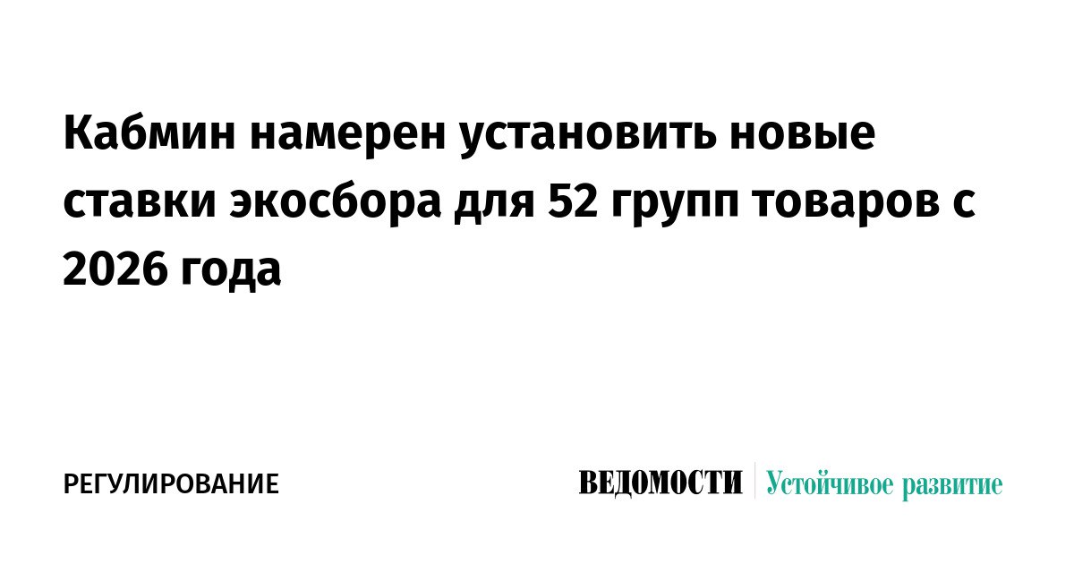 Минприроды России подготовило для общественного обсуждения проект постановления правительства, устанавливающего на 2026 г. для 52 групп товаров и упаковки новые базовые ставки экологического сбора, а также коэффициенты, повышающие или понижающие ставки.