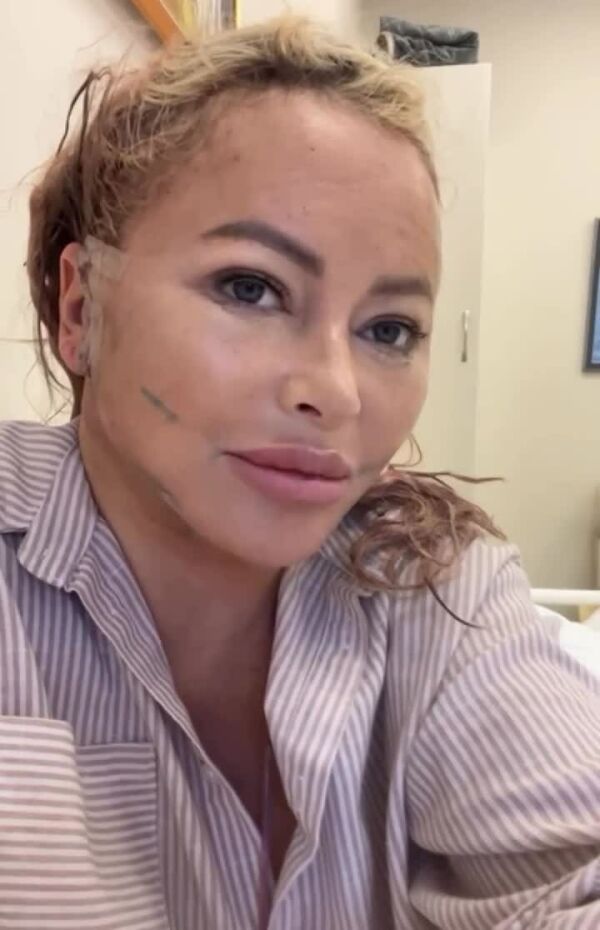 Сейчас лицо телеведущей сильно опухло, что можно заметить на представленных видеозаписях. При этом пациентка на самочувствие совсем не жалуется.