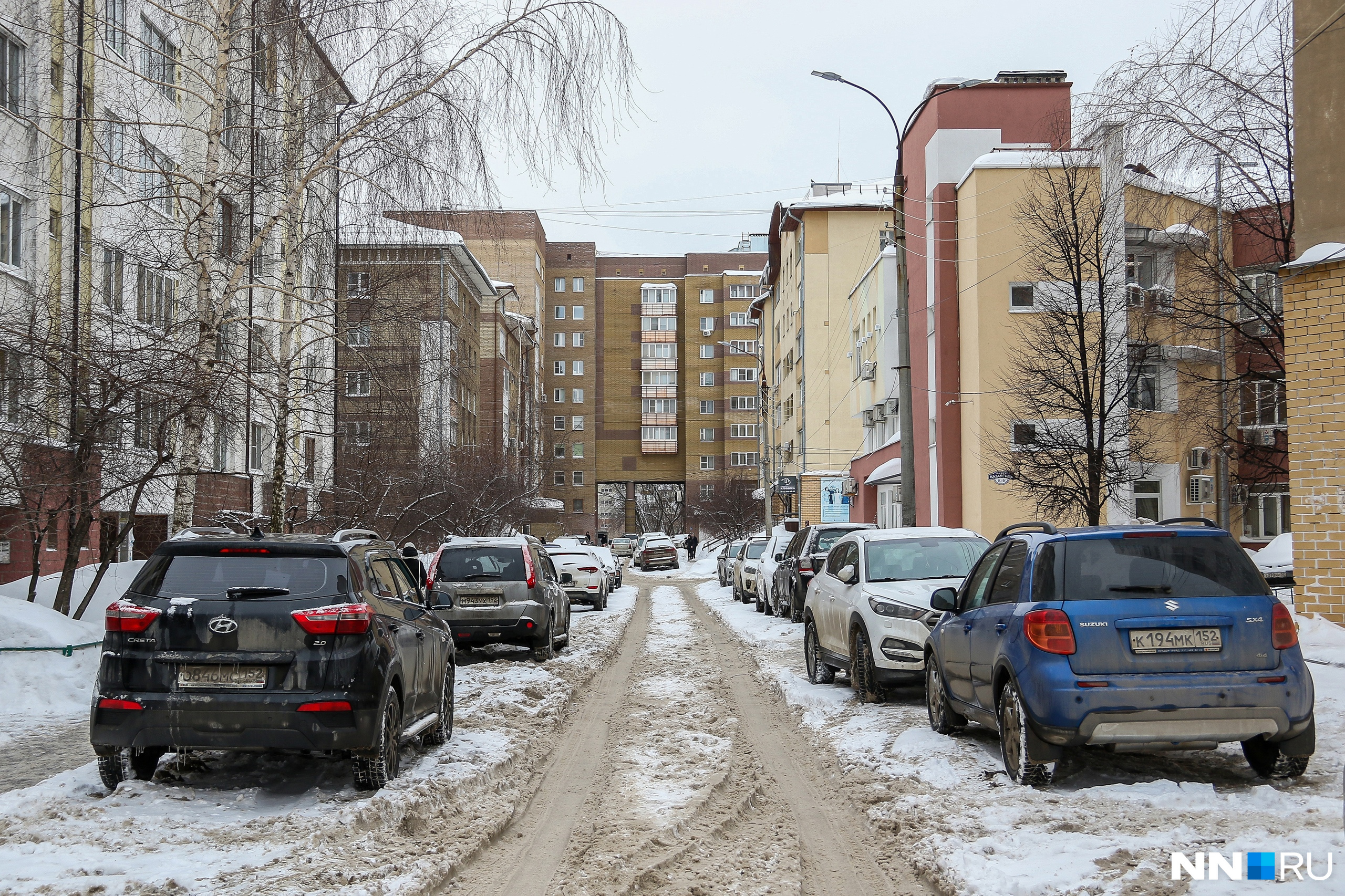 В многоэтажке на Казанском шоссе нижегородка живет уже около 25 лет. Она заселилась в то время, когда микрорайон начали активно застраивать. Условно это место называют жилым комплексом «городок ФСБ»: считается, что здания строили как раз для работников спецслужб (выше по шоссе находится институт ФСБ). Всего в «городке» около 15 многоэтажек, разделенных узкими проулками. Рядом, за металлическим забором, стоит здание Технического университета имени Алексеева. Дворы в округе почти полностью заставлены автомобилями.