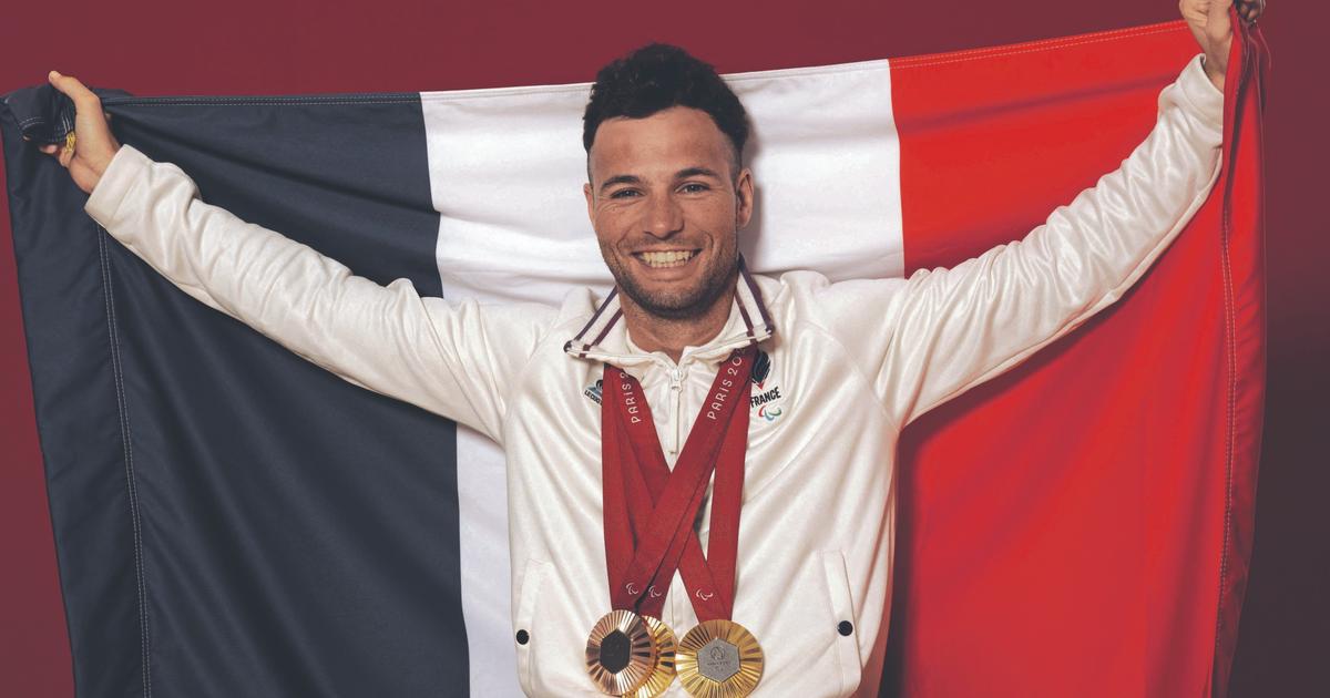 Au ras du sol, harnaché dans un handbike (vélo couché à trois roues dont le pédalier est actionné par les bras), Florian Jouanny file, taille les trajectoires à la serpe. Les biceps brûlent, les joues flambent. La vitesse et le bruit des roues soufflent dans les oreilles. Pilote virtuose, il se joue des aspérités que la route plante comme des pièges. En apnée. Entre souplesse et force. Avec les cyclistes Mathieu Bosredon et Alexandre Lauté, le nageur Ugo Didier ou le badiste Lucas Mazur, l’Isérois faisait partie des Français ayant brillé lors des Jeux paralympiques de Paris 2024. Un an plus tard, le paracycliste vient de terminer les championnats du monde de Renaix, en Belgique, avec 3 médailles d’or (course en ligne, contre-la-montre, relais) et s’est inscrit comme le compétiteur le plus titré de la compétition. Symbole d’une équipe de France qui danse toujours au sommet du tableau des médailles (27 médailles, dont 12 d’or).