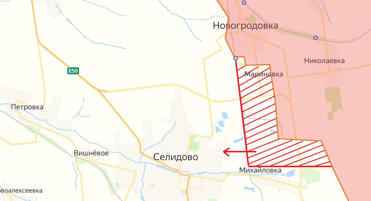 Покровское направление — на утро подтверждается заход ВС РФ в Селидово. Зацепились за дома на восточной окраине (в районе ул. Островского). Значимого продвижения в черте города — пока нет.