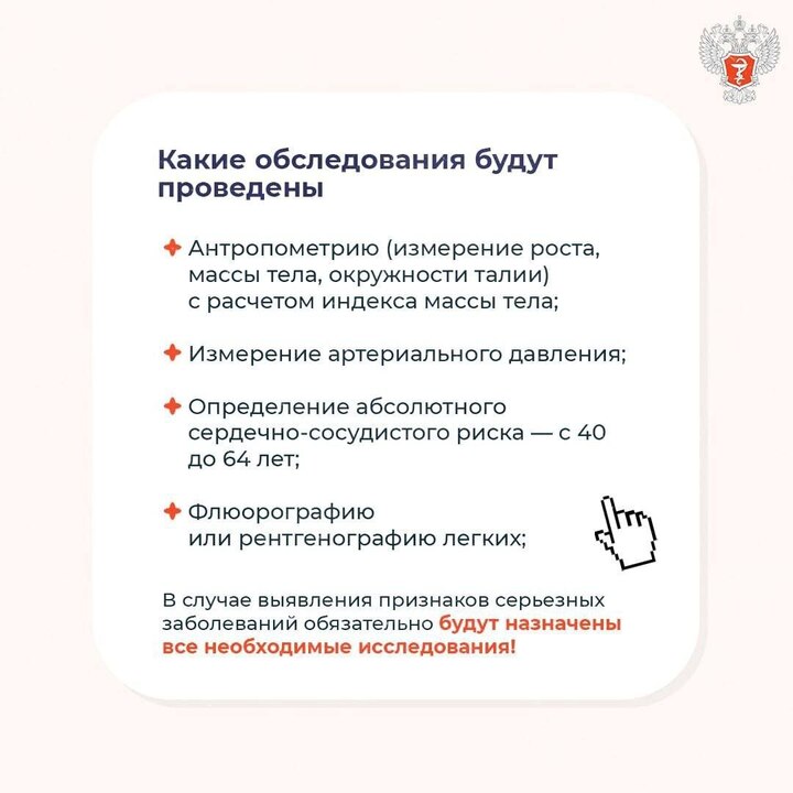 Диспансеризация включает в себя анкетирование, анализы крови, антропометрию, флюорографию, электрокардиографию и другие исследования.