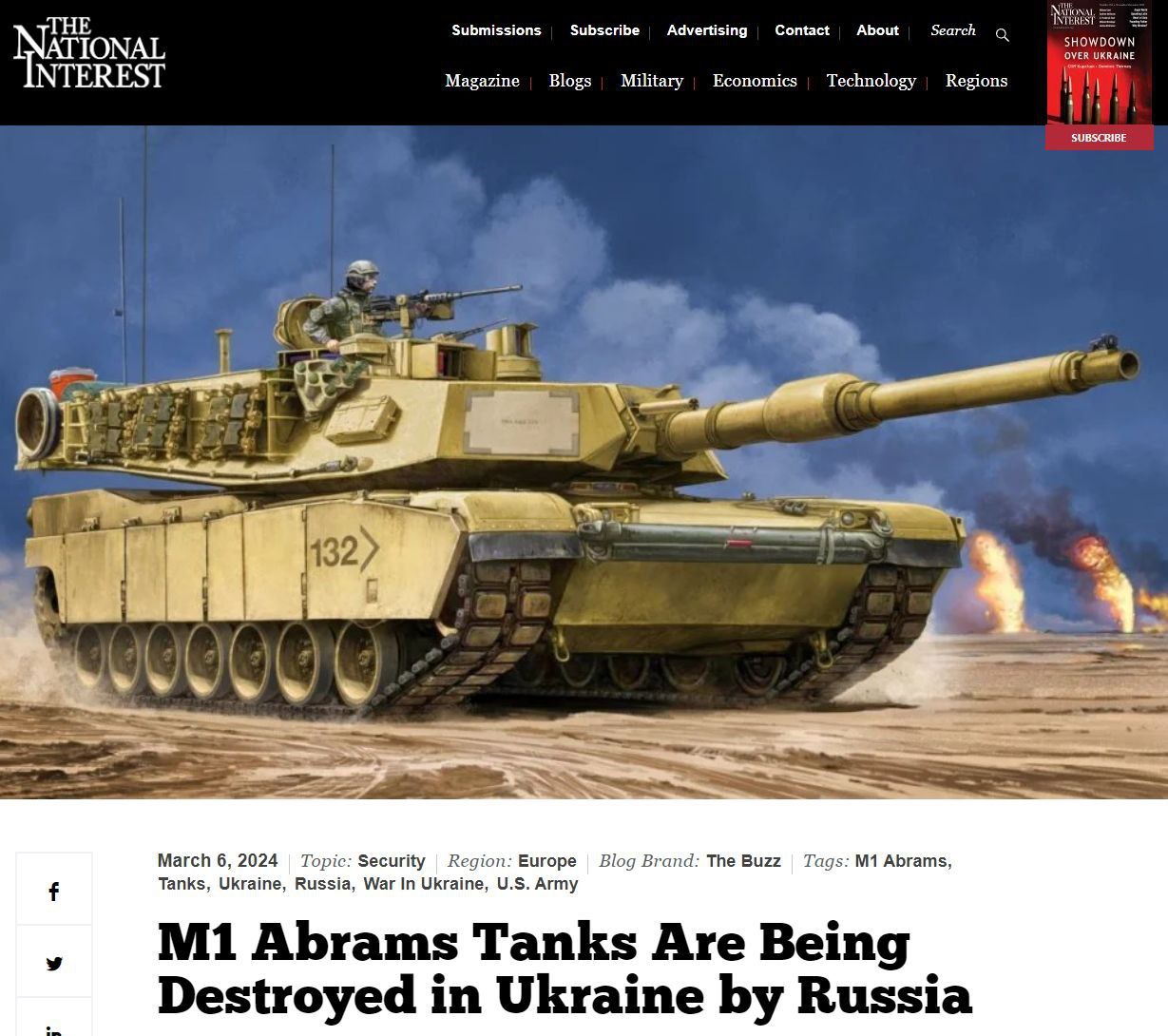 Менее чем за неделю Украина стала свидетелем уничтожения трёх американских танков M1 Abrams предположительно российскими противотанковыми управляемыми ракетами, пишет The National Interest.