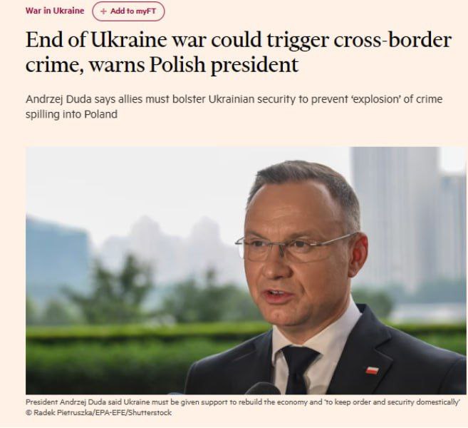 Также Дуда ожидает рост международной организованной преступности после возвращения украинских солдат с фронта.