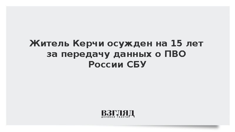 Житель Керчи приговорен к 15 годам колонии строгого режима за государственную измену после передачи Службе безопасности Украины сведений о дислокации российской ПВО, что могло позволить нанести огневые удары по позициям российских войск.