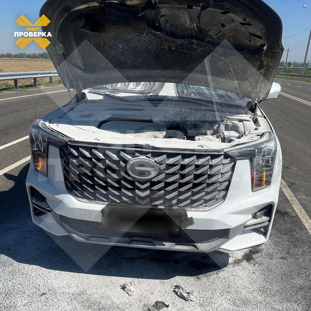 Ещё один китайский внедорожник GAC загорелся на трассе. Он вспыхнул под Краснодаром во время движения. Это третий инцидент с авто этого бренда