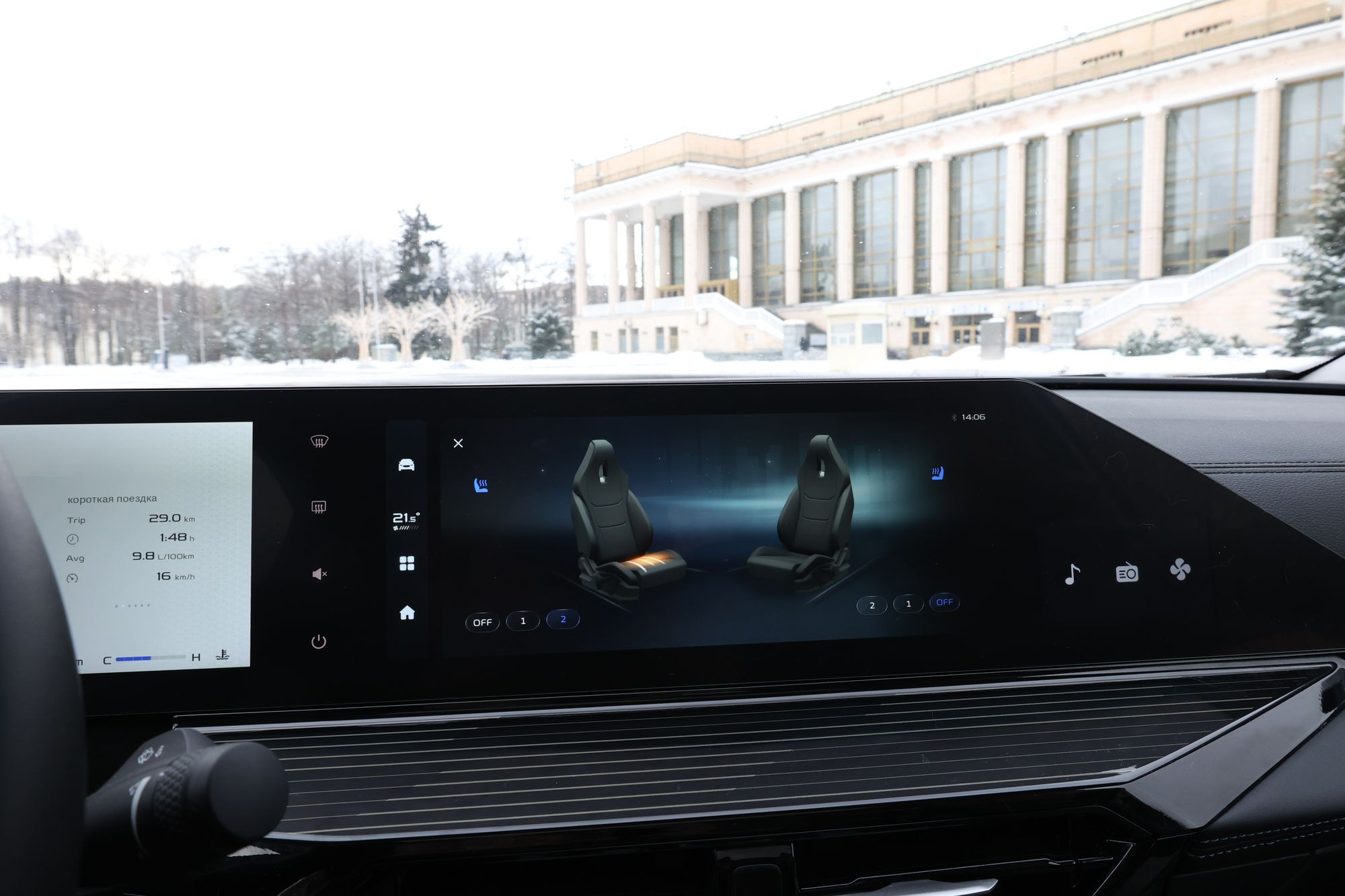 К двум стандартным ЖК-дисплеям комбинации приборов и медиасистемы добавили крошечный третий, справа. С него передний пассажир может менять кое-какие настройки музыки и климат-контроля. А вместо обычных передних кресел поставили «ковши» с интегрированными подголовниками. Хотя они и псевдоспортивные, профиль объективно неплох.