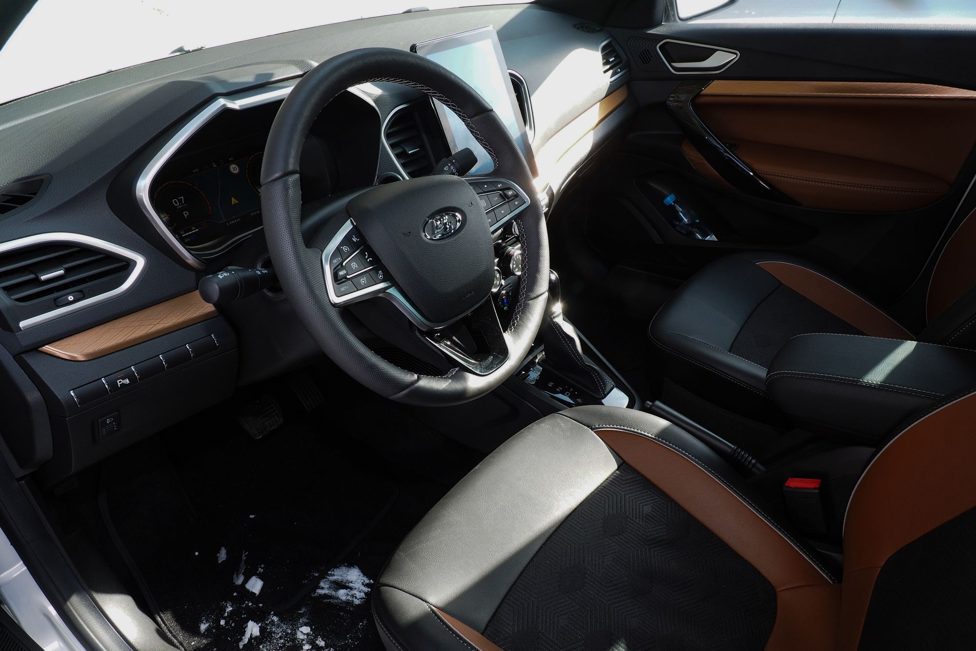 Интерьер Лады хоть и преобразился с появлением поколения NG, обрел новую переднюю панель и дверные карты, отделанные мягким пластиком, но все же здесь чувствуется какой-то налет архаики. Bдобавок не всё, что предполагалось устанавливать на обновленную Весту, удалось импортозаместить. Временно нет обогрева задних сидений, переднего парктроника, климат-контроля, сканера мертвых зон, датчиков дождя и света. Зато перед глазами водителя цифровая комбинация приборов и вертикальный экран медиасистемы диагональю 10,4 дюйма с сервисами Яндекса, включая онлайн-навигацию. Функционал, красочность и удобство у них на голову выше, чем у китайских конкурентов.