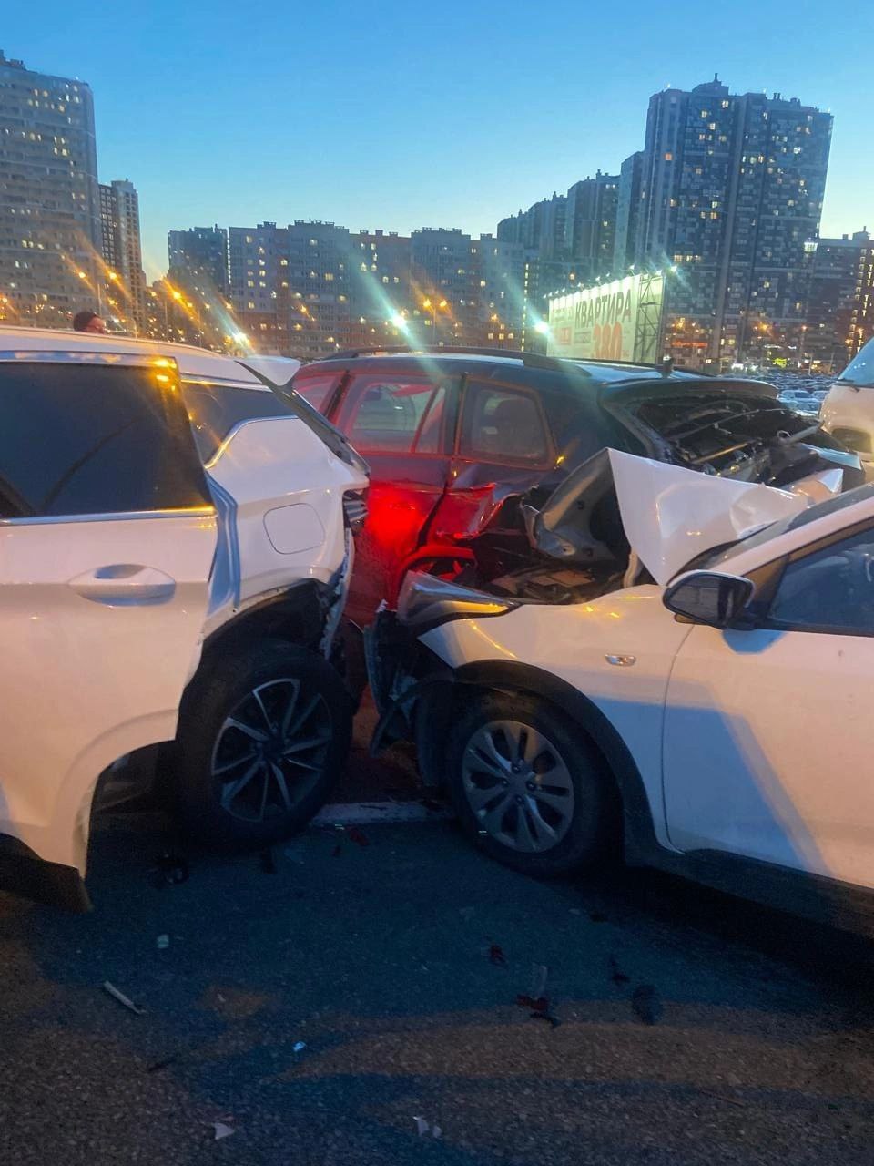 Красочное ДТП произошло накануне вечером на 51-м километре внутреннего кольца КАД.