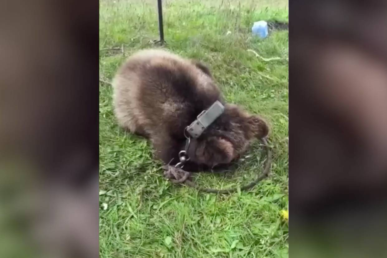 Медвежонок, которого на плато Бермамыт поймал для заработка местный охотник. Видео © VK / Павел Пашков