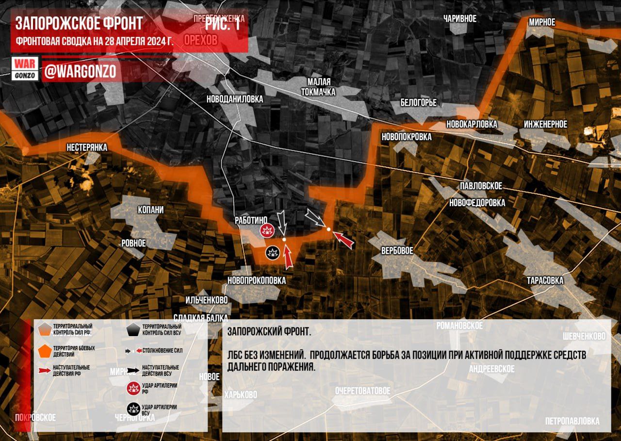 Запорожский фронт. ЛБС без изменений. Продолжается борьба за позиции при активной поддержке средств дальнего поражения. (Рис. 1)